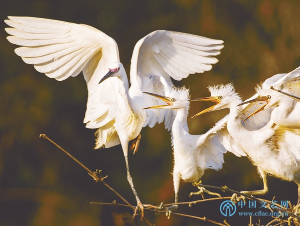 我从事摄影组织工作36载,期间也在不断努力拍摄各种题材的作品,相对而言较关注生态摄影,也爱护生态环境。这组作品经过简单的调色、裁剪,不做后期任何处理,真实纪录了广西的珍稀动物。如作品《聚精会神》,反映了2005年在弄岗保护区内发现的弄岗穗鹛,目前不到2000只,是世界上唯一一个由中国人以广西地名来命名的珍稀鸟类。《母子之间》所拍摄的白头叶猴是世界公认最稀有猴类,仅存1100多只,数量比国宝大熊猫还稀少,生活在广西崇左,之外的任何地方都寻觅不到它的踪迹。
