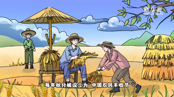“秋分者,阴阳相半也,故昼夜均而寒暑平。”分,即为平分。秋分日昼夜等长,平分秋色,气温转凉。瓜果飘香,稻谷归仓,每年秋分被设立为“中国农民丰收节”,礼赞丰收的喜悦。放风筝、竖鸡蛋、吃秋菜……朴素的事物寄托着人们对健康平安的祈福和对美好生活的向往。