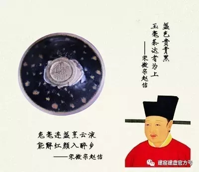 两宋时期,上自宫廷皇室、下至布衣之家,对建盏都有一种特殊的偏爱。宋徽宗在《大观茶论》中说:“盏色贵青黑,玉毫条达者为上,取其焕发彩色也。”建盏所特有的艺术魅力和独特功能令人叹为观止,并成为宋代社会的特殊文化载体。